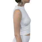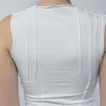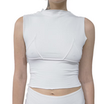 Sleeveless top with bra imitation seams. Asymmetric form of clothes, decorative overlock details, triangle bra seams, stitching on the material. Handmade from high-quality elastic organic cotton in Cracow.