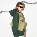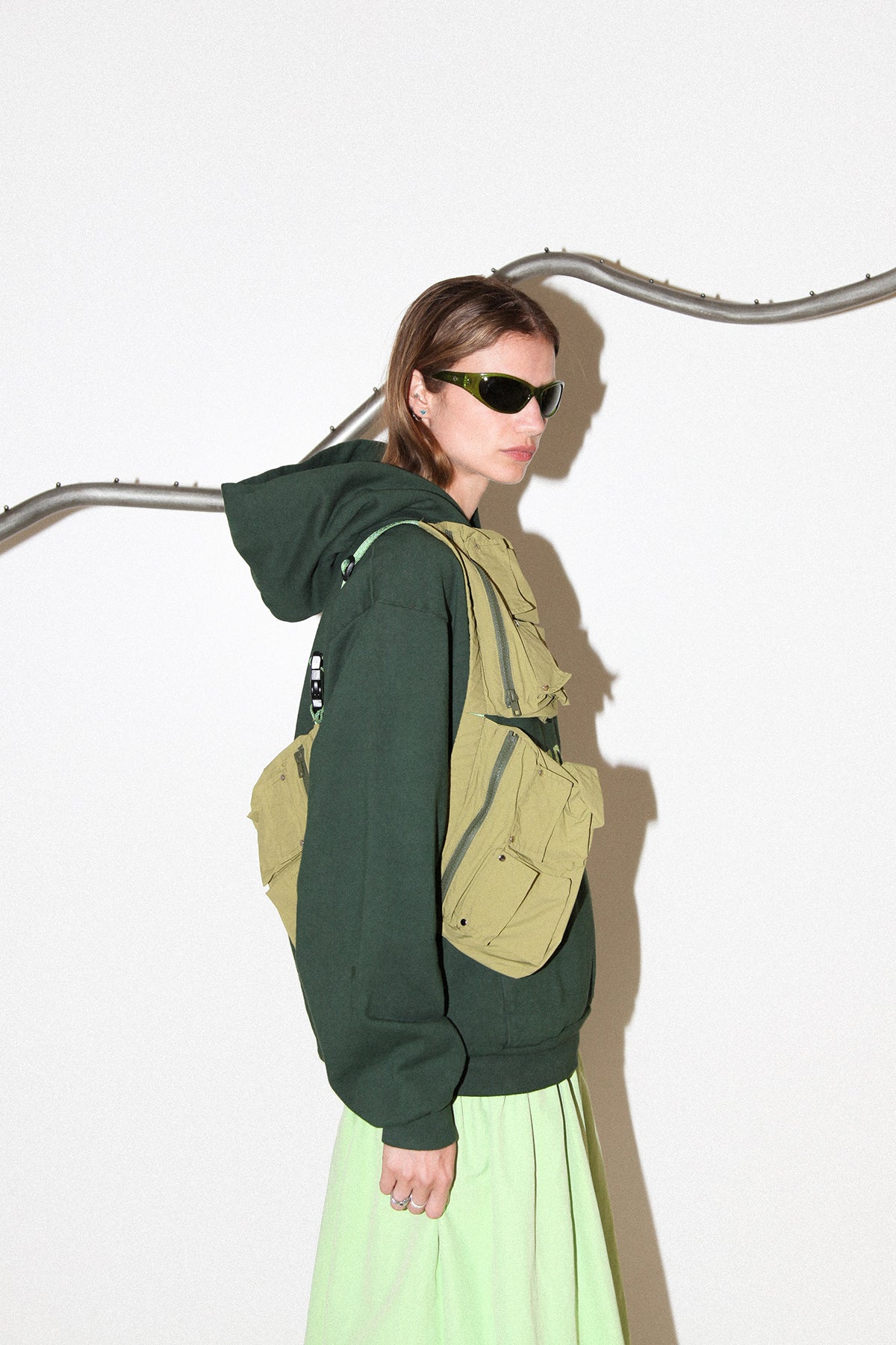日本からのキルティングされたリサイクルポリエステル混紡生地を使用し、ロサンゼルスでカットと縫製を行いました。