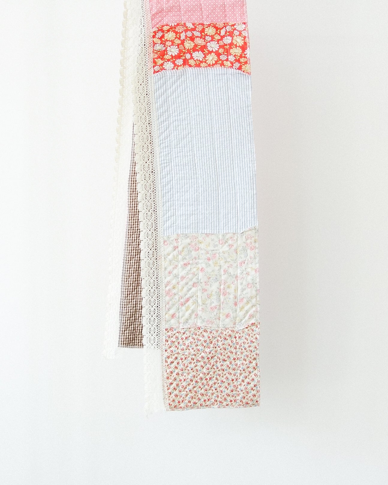 小林勇祥 両面キルティングパッチワークテーブルランナー レーストリム付き