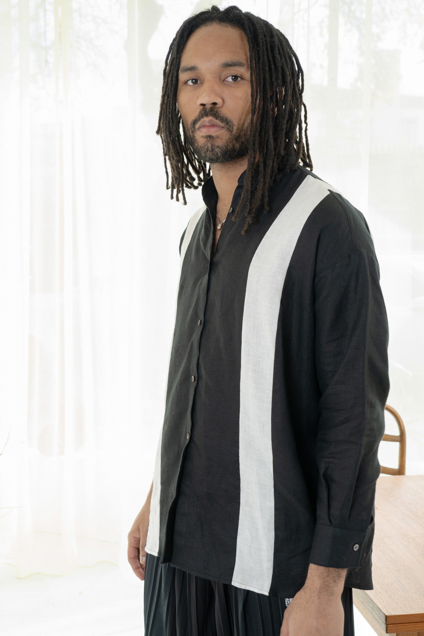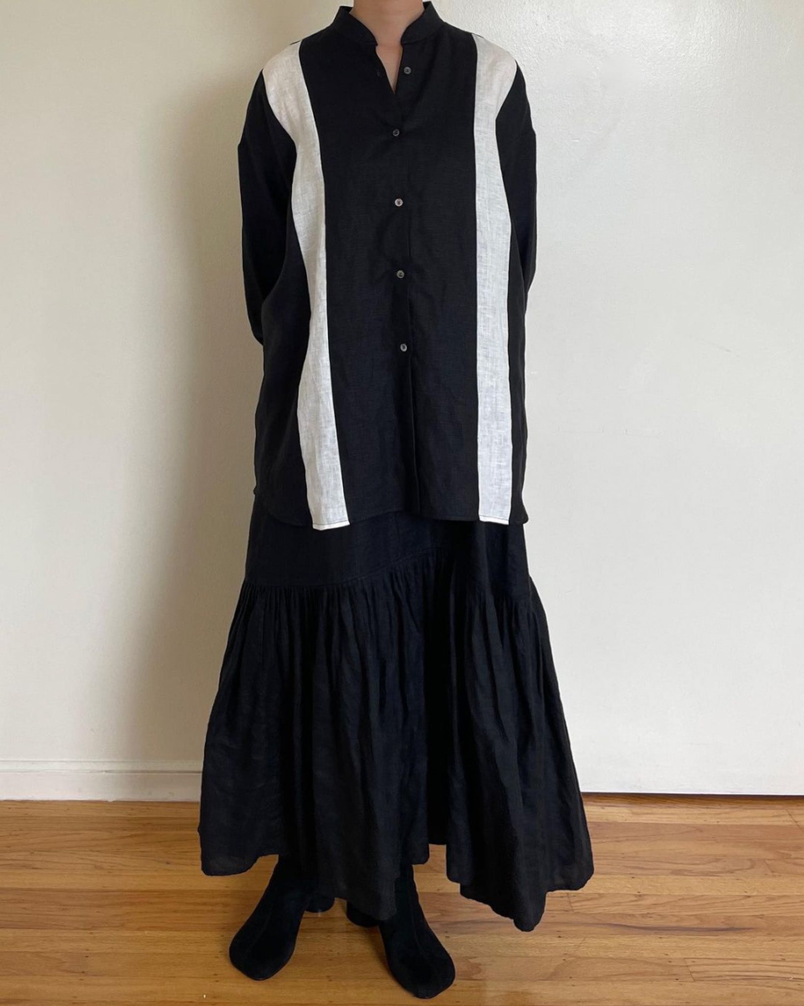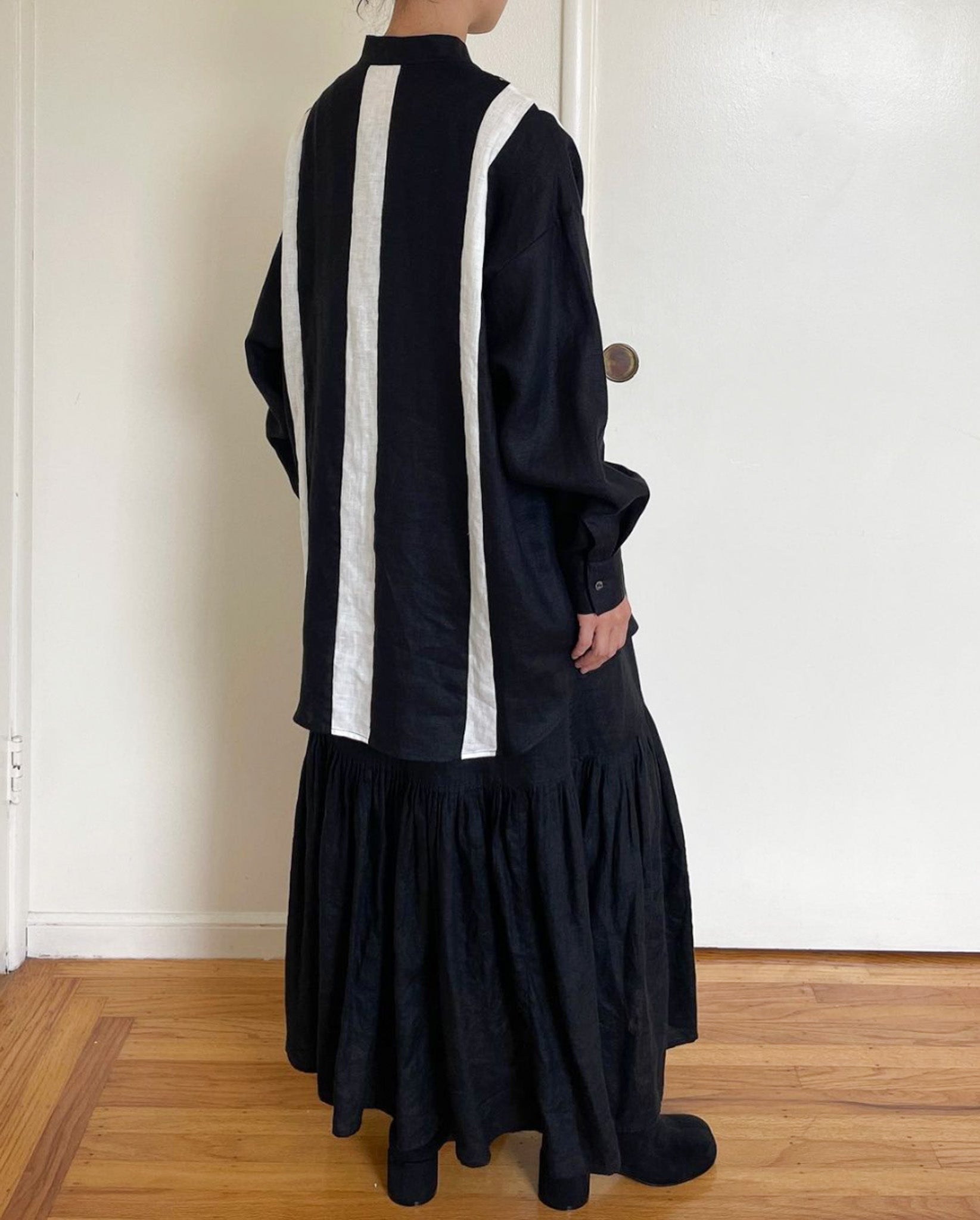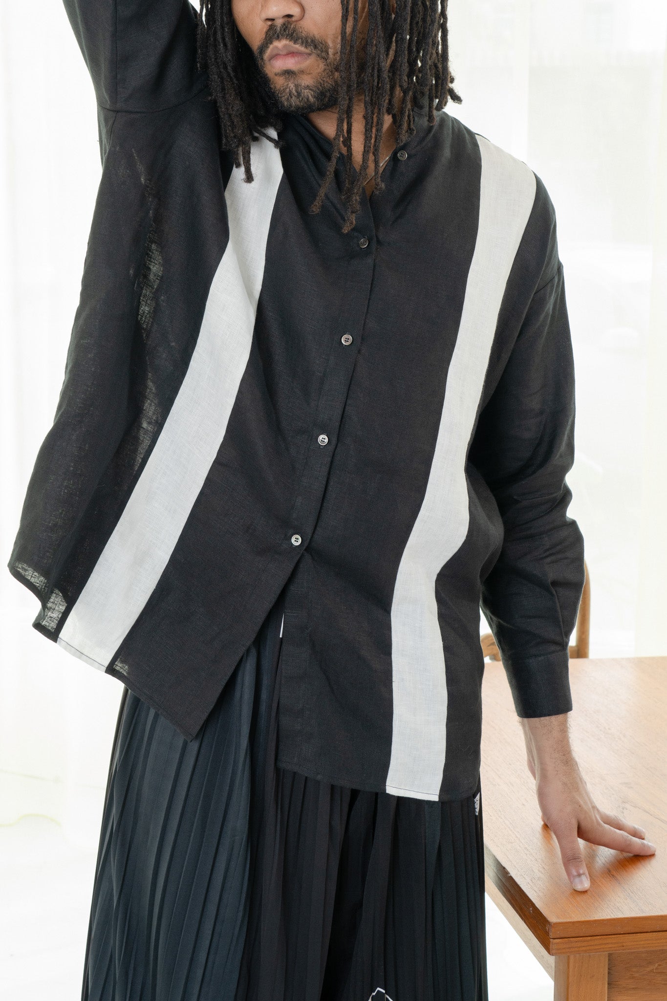 Stripe Baggy Shirt (Irish Linen/Black/White)