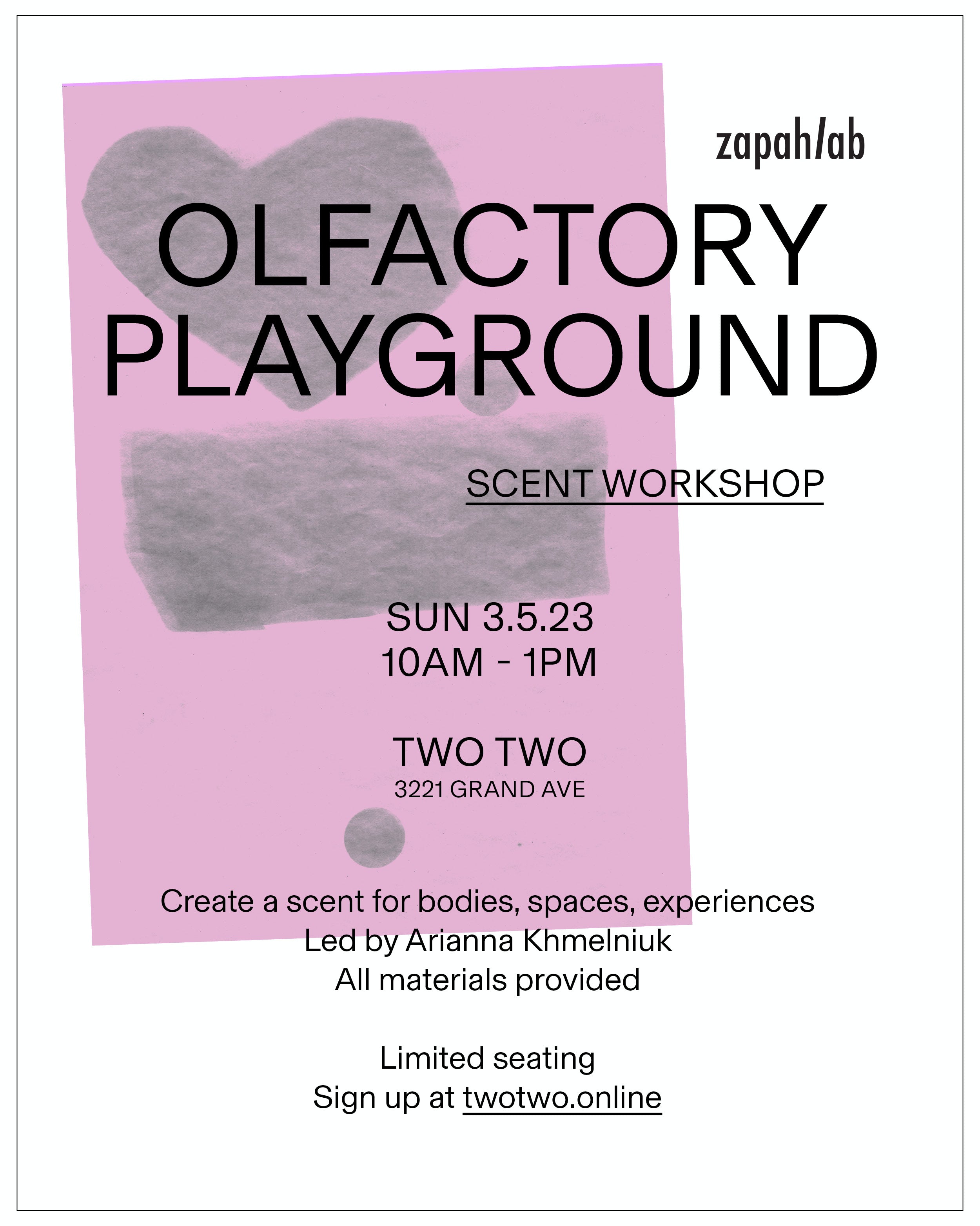 Olfactory Playground was concepted by Arianna Khmelniuk of Zapah Lab as a way for artists and creatives to expand the possibility of scent. Anyone interested in experimenting with scent in an art context is welcome to be part of this group art-making activity.