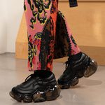 Footwear that looks as if you have stepped on something huge and gel-like, Moopie features five segmented air bubbles and leather upper. The outsole, which is supposed to be sturdy to support the entire body, is deliberately made to look fluid and soft, a design that tickles the playful spirit. The rubber parts on the outside add an accent to the design. The upper has a delicate finish in contrast to the voluminous soles. The sharp shape, the nape of the foot, and the gentle slope from the toe to the heel give the impression of an elegant and slender style not found in existing sneakers.