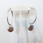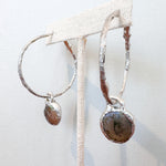 Soft soldered hoop earrings with pearl pendants, sterling silver posts. Hoops are 0.5” Pearls approximately 1/2-1"