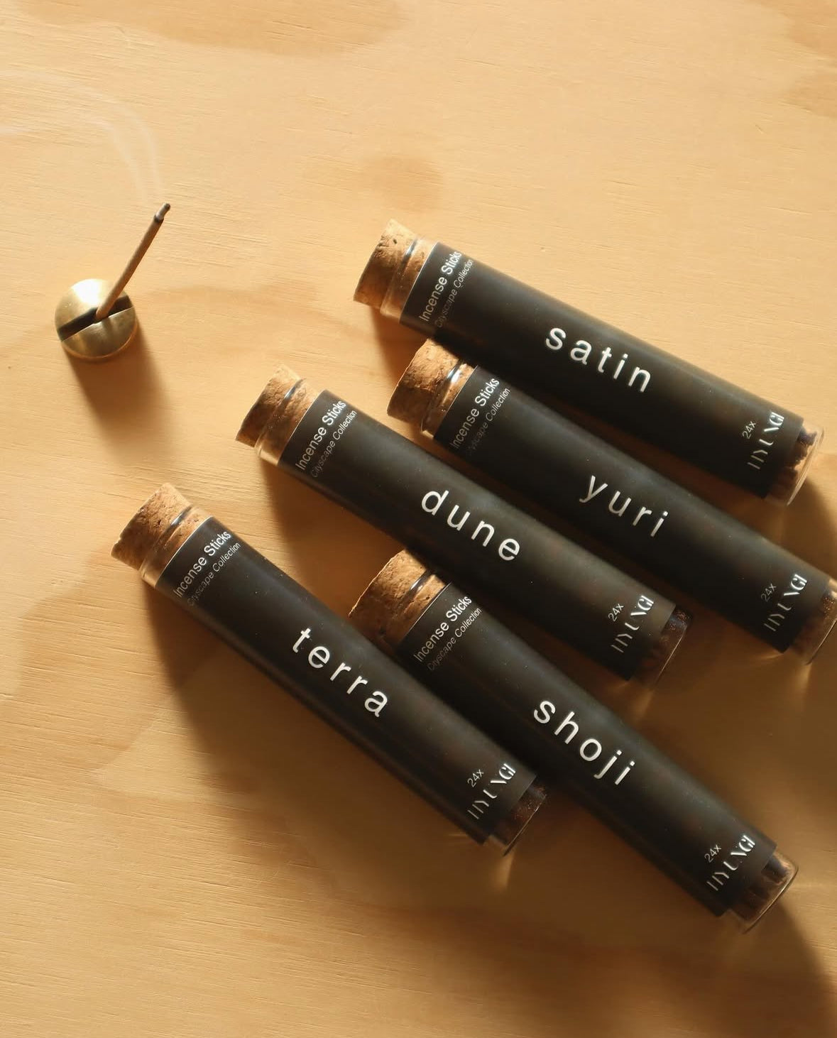 An incense discovery collection of five fragrances (6 incense sticks of each) shaped by the artist’s travels. The set offers a fragment of landscape, memory, and time.