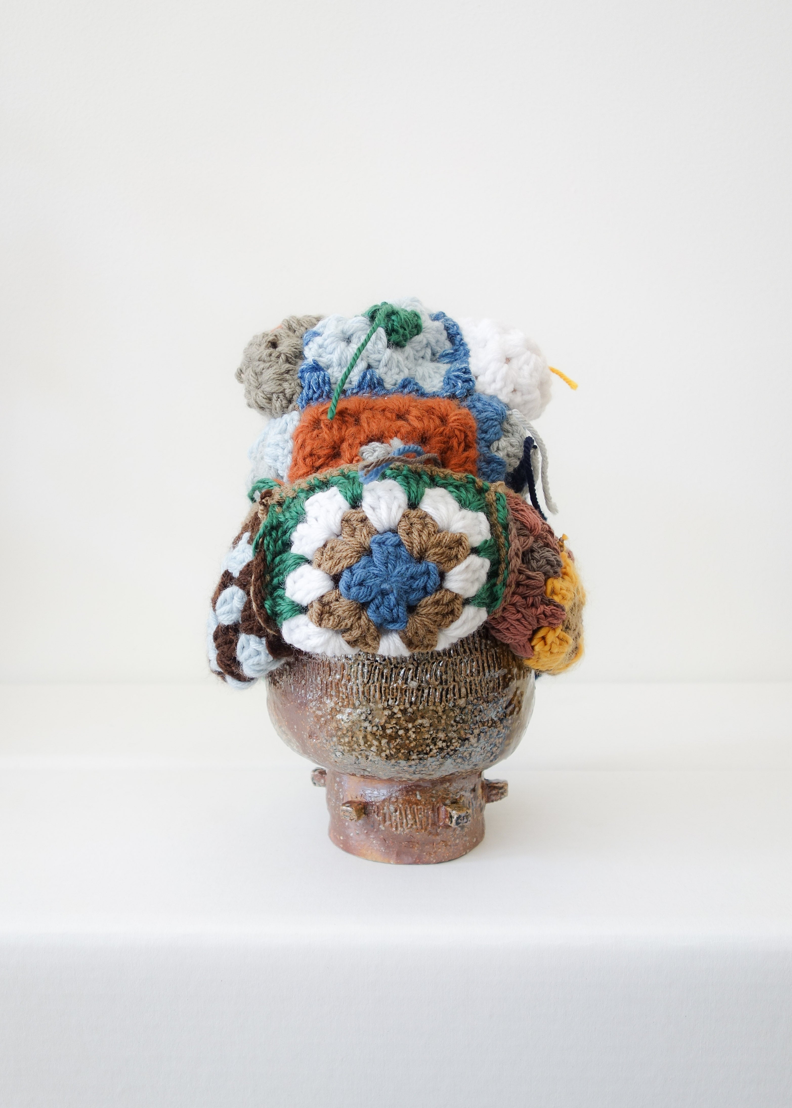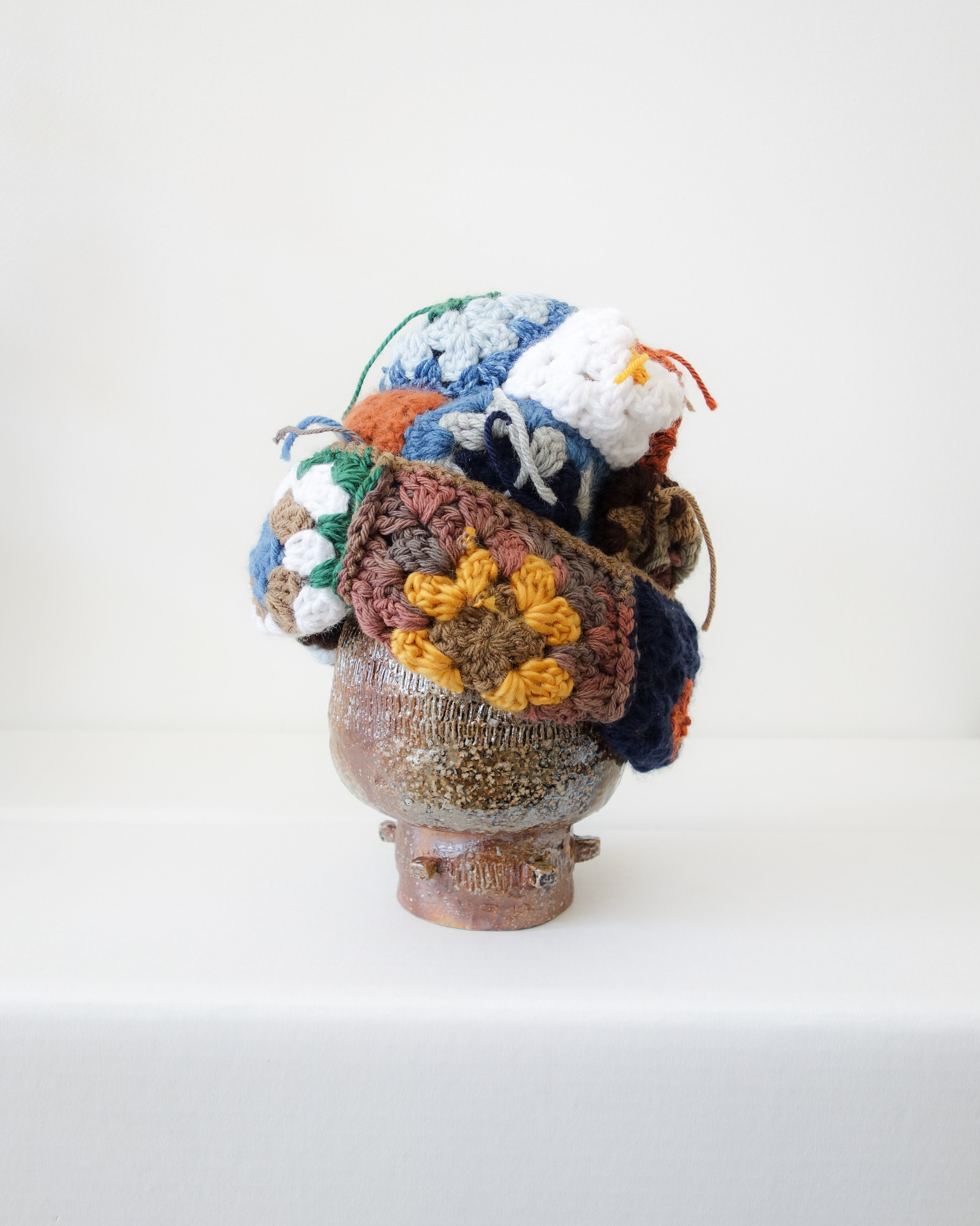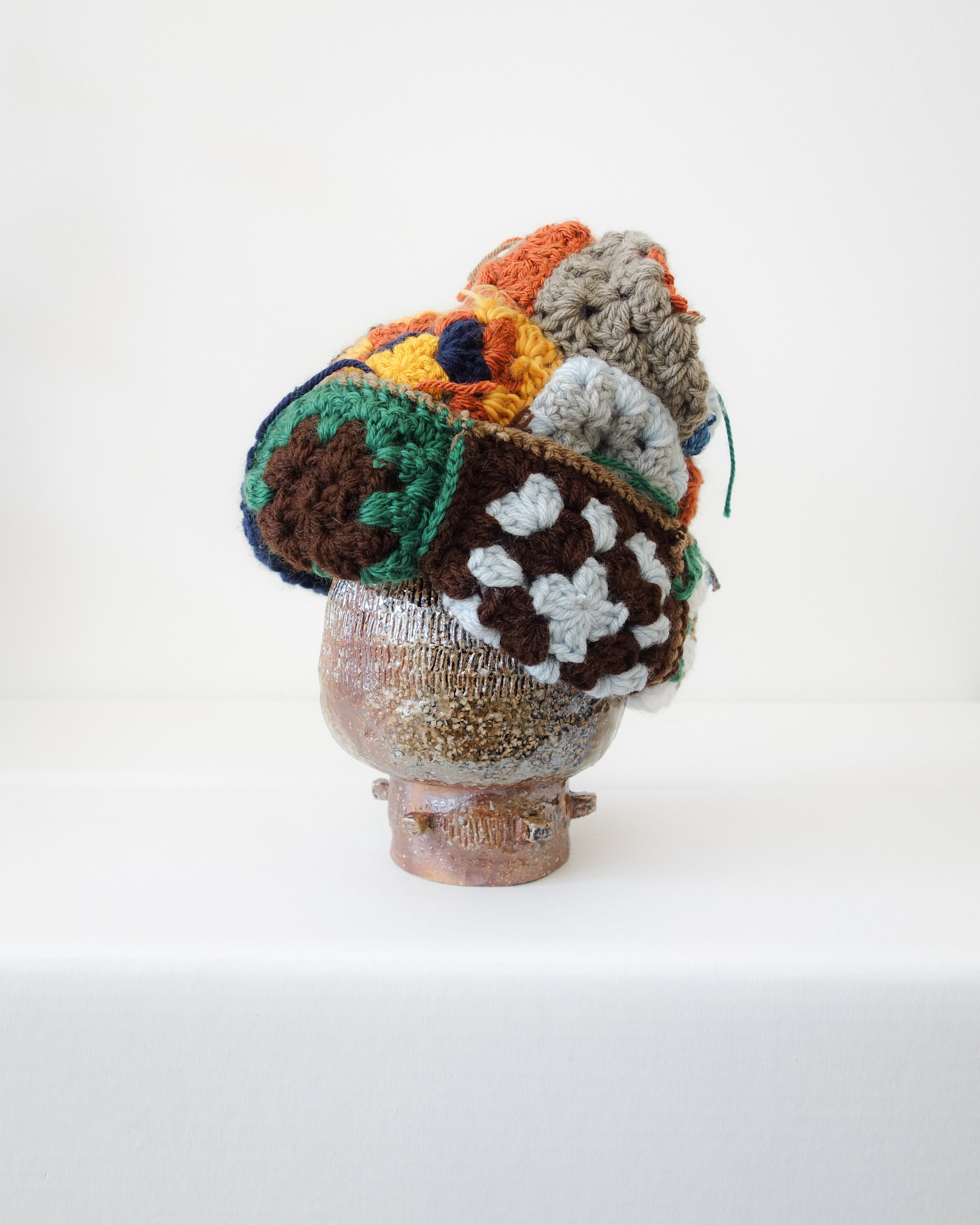 Each square was individually crocheted, patchworked and then hand sewn together to form this article of headwear.
