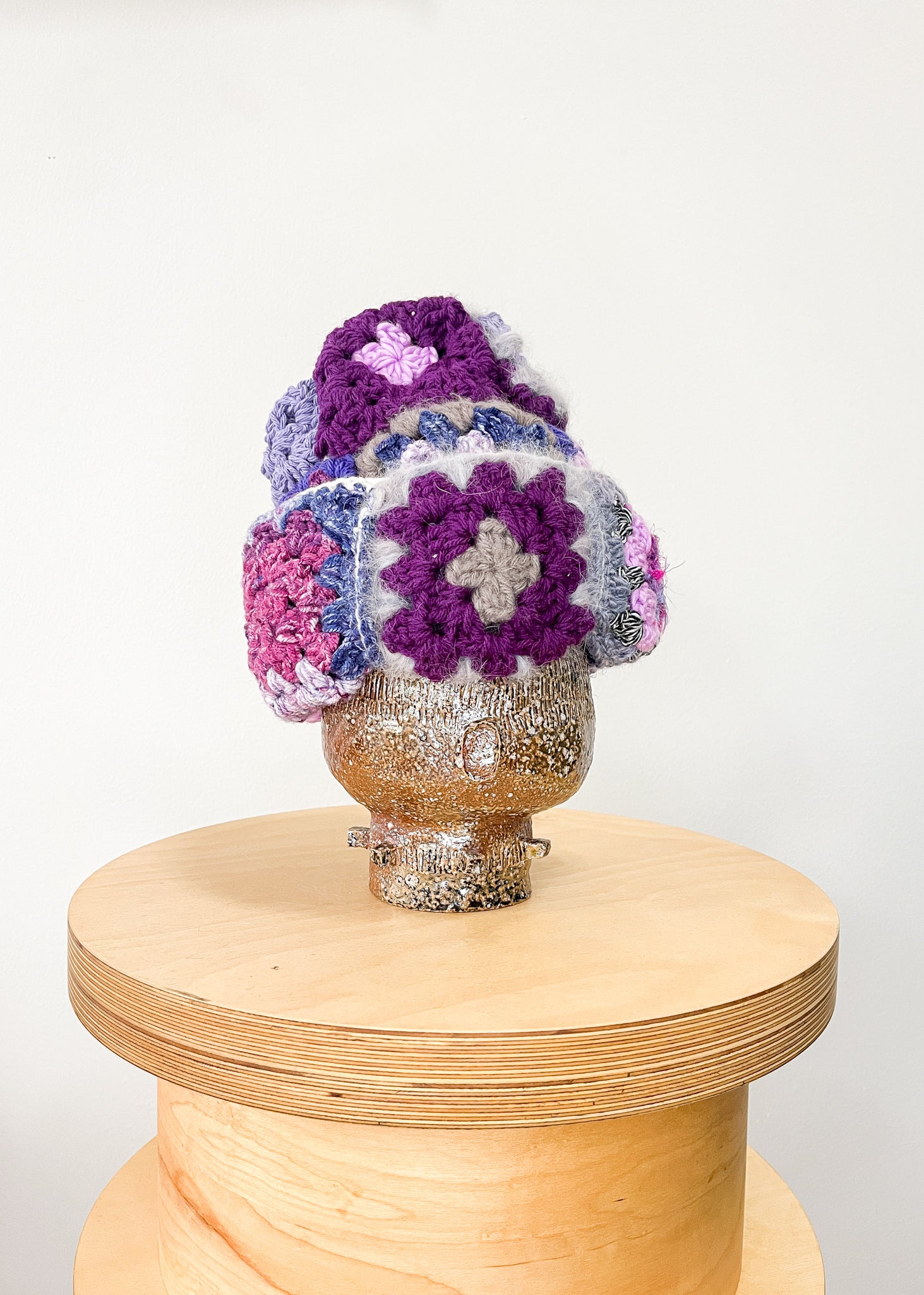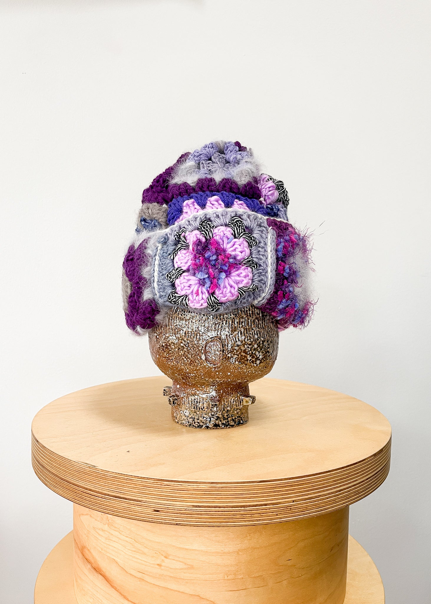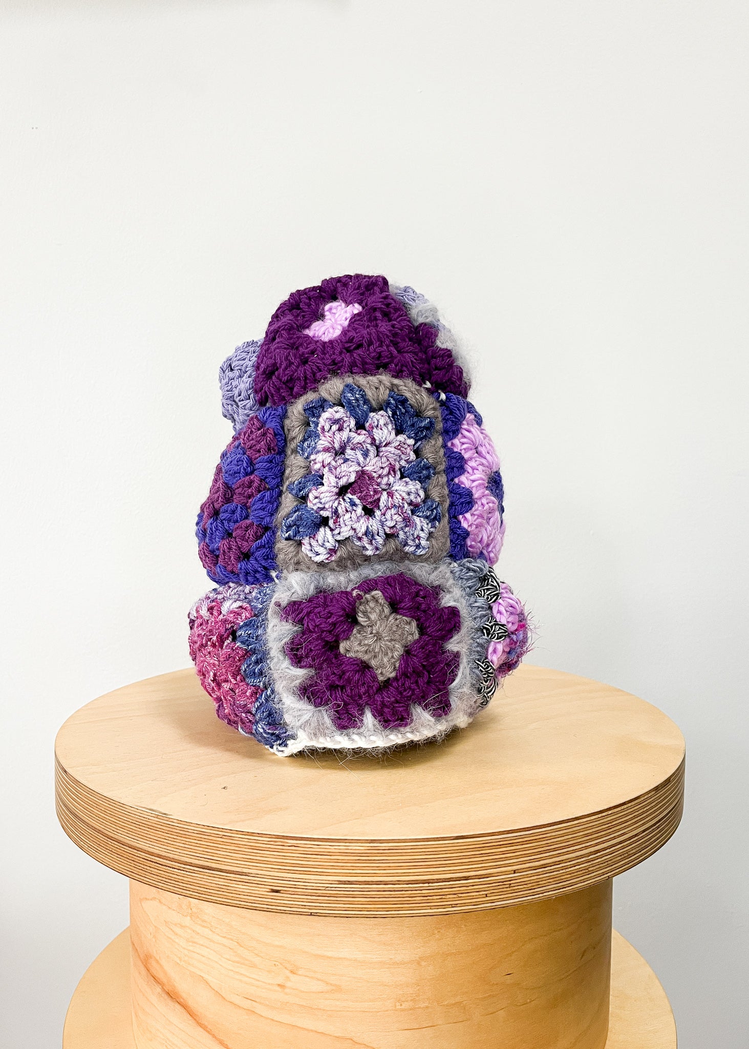 Each square was individually crocheted, patchworked and then hand sewn together to form this article of headwear.