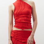 One shoulder asymmetric top. Unique handmade suture formation on each item.