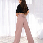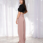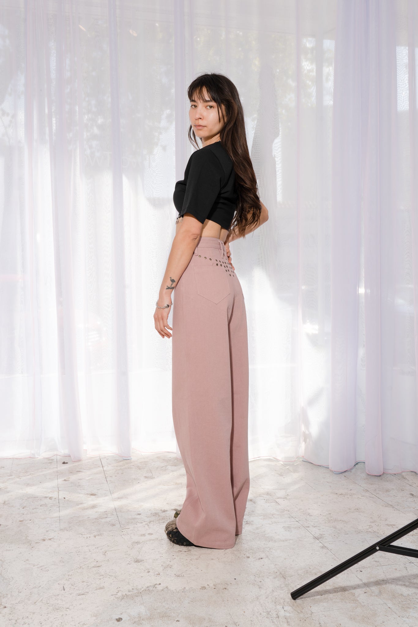 Cotton wide leg trouser pants with eyelet bikini detail in the back. 4 pockets.