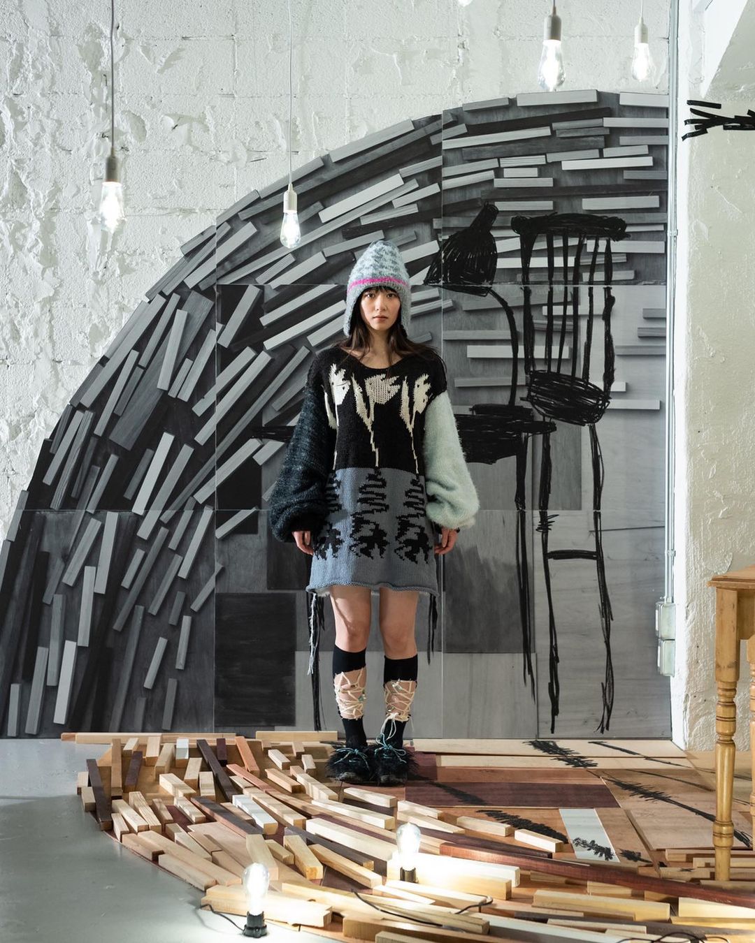 AW23 “Shadow” knit jumper featuring flower motif. Can wear reverse for contrast color.